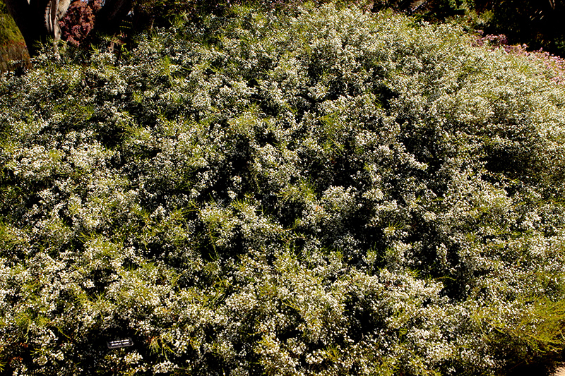 A regal display of small dainty white flowers covers this shrub from mid-winter to spring, adding great interest to sunny or partly shaded borders; once established it is quite drought tolerant, wind resistant, and can withstand mild frost