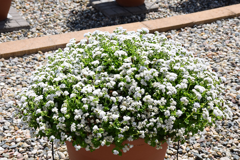 Bumble™ White Flossflower is a fine choice for the garden, but it is also a good selection for planting in outdoor containers and hanging baskets. It is often used as a 'filler' in the 'spiller-thriller-filler' container combination, providing a mass of flowers against which the thriller plants stand out. Note that when growing plants in outdoor containers and baskets, they may require more frequent waterings than they would in the yard or garden.
