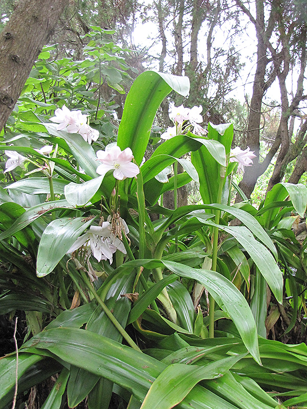 Moore's Crinum Lily will grow to be about 24 inches tall at maturity extending to 4 feet tall with the flowers, with a spread of 3 feet. Its foliage tends to remain dense right to the ground, not requiring facer plants in front. Although it's not a true annual, this fast-growing plant can be expected to behave as an annual in our climate if left outdoors over the winter, usually needing replacement the following year. As such, gardeners should take into consideration that it will perform differently than it would in its native habitat.