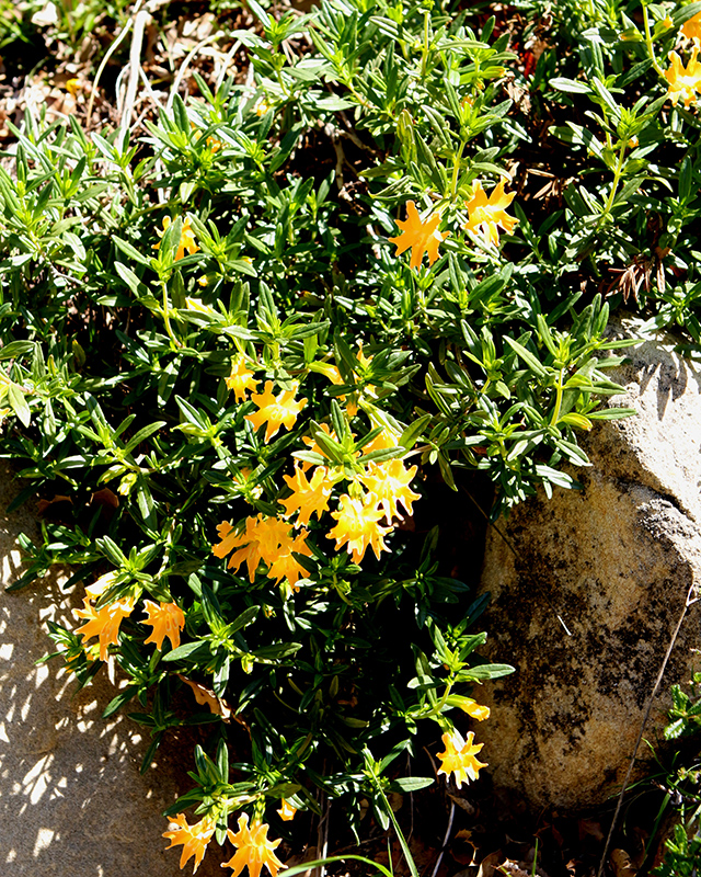 Large-flowered Bush Monkeyflower is a dense multi-stemmed evergreen shrub with a ground-hugging habit of growth. Its relatively fine texture sets it apart from other landscape plants with less refined foliage.