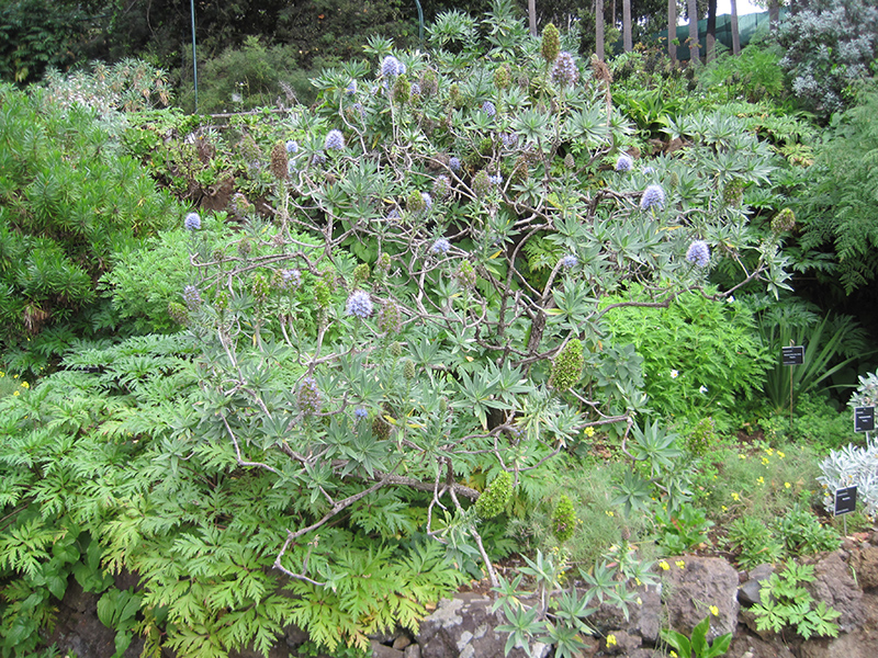 Webb's Bugloss will grow to be about 3 feet tall at maturity extending to 4 feet tall with the flowers, with a spread of 3 feet. Its foliage tends to remain dense right to the ground, not requiring facer plants in front. It grows at a fast rate, and tends to be biennial, meaning that it puts on vegetative growth the first year, flowers the second, and then dies. However, this species tends to self-seed and will thereby endure for years in the garden if allowed. As an evegreen perennial, this plant will typically keep its form and foliage year-round.