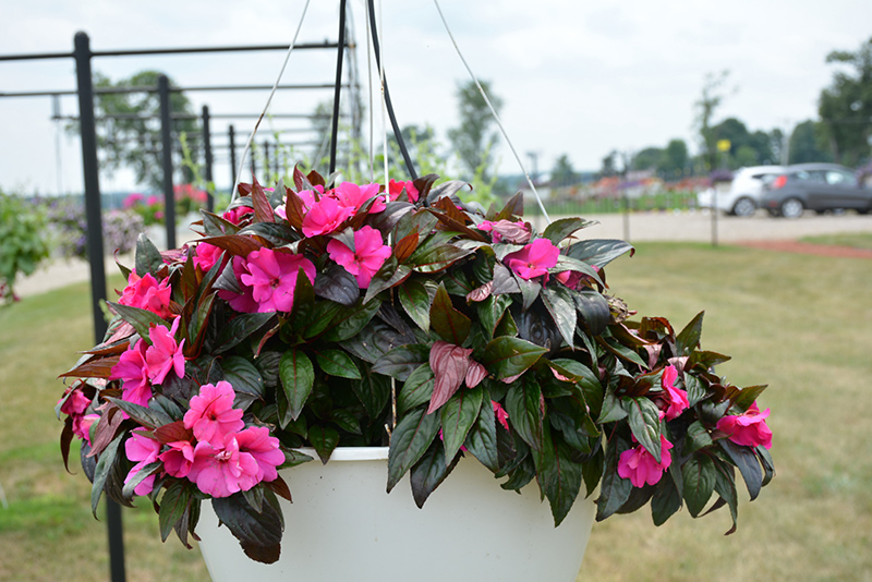 Pure Beauty Purple New Guinea Impatiens is a fine choice for the garden, but it is also a good selection for planting in outdoor containers and hanging baskets. It is often used as a 'filler' in the 'spiller-thriller-filler' container combination, providing a mass of flowers against which the thriller plants stand out. Note that when growing plants in outdoor containers and baskets, they may require more frequent waterings than they would in the yard or garden.