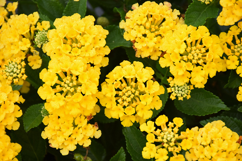 Havana® Gold Lantana features showy cymes of gold flowers at the ends of the stems from early summer to mid fall, which emerge from distinctive yellow flower buds. Its glossy pointy leaves remain dark green in colour throughout the year.