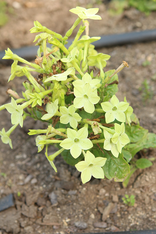 Starmaker Deep Lime Flowering Tobacco will grow to be about 10 inches tall at maturity, with a spread of 12 inches. When grown in masses or used as a bedding plant, individual plants should be spaced approximately 12 inches apart. Its foliage tends to remain low and dense right to the ground. Although it's not a true annual, this fast-growing plant can be expected to behave as an annual in our climate if left outdoors over the winter, usually needing replacement the following year. As such, gardeners should take into consideration that it will perform differently than it would in its native habitat.