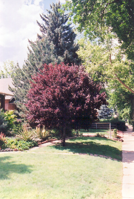 Purpleleaf Plum is a deciduous tree with a shapely oval form. Its average texture blends into the landscape, but can be balanced by one or two finer or coarser trees or shrubs for an effective composition.