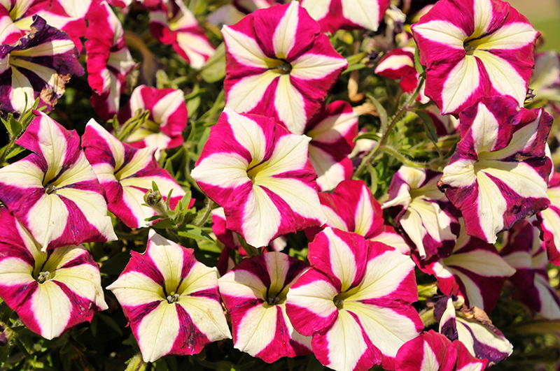 Tea Violet Bicolor Petunia is blanketed in stunning violet trumpet-shaped flowers with creamy white stripes at the ends of the stems from mid spring to late summer. Its pointy leaves remain green in colour throughout the season.