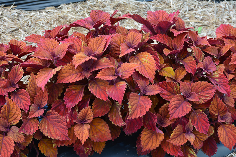 Inferno Coleus' attractive crinkled pointy leaves emerge orange in spring, turning scarlet in colour with hints of coppery-bronze the rest of the year on a plant with an upright spreading habit of growth.