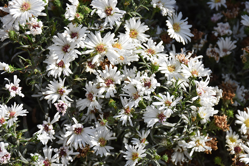 Magic™ White Aster will grow to be about 20 inches tall at maturity, with a spread of 24 inches. When grown in masses or used as a bedding plant, individual plants should be spaced approximately 18 inches apart. Its foliage tends to remain dense right to the ground, not requiring facer plants in front. It grows at a medium rate, and under ideal conditions can be expected to live for approximately 8 years. As an herbaceous perennial, this plant will usually die back to the crown each winter, and will regrow from the base each spring. Be careful not to disturb the crown in late winter when it may not be readily seen!