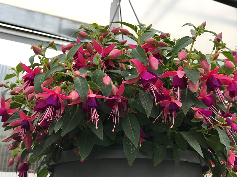 An outstanding series that is very heat tolerant, with great garden performance; this cascading selection features dark purple corollas with scarlet-pink tubes and sepals; very attractive to hummingbirds; perfect spilling from patio pots, in sun or shade