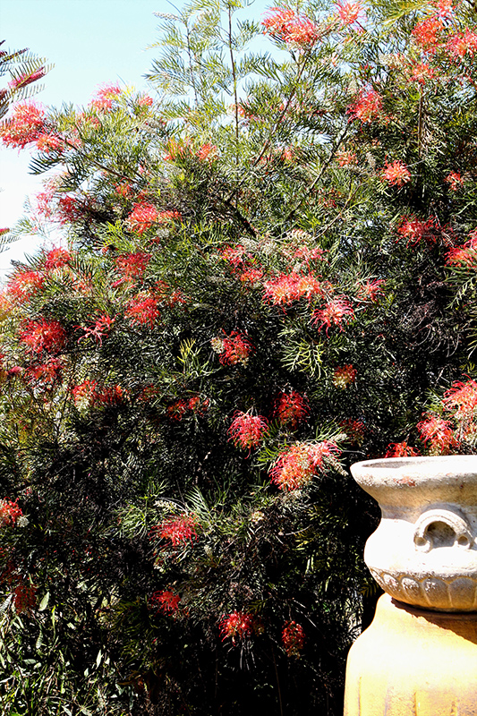 Xera Ember Juniper Leaf Grevillea features delicate red spider-like flowers with orange overtones along the branches from late winter to late fall. It has attractive emerald green evergreen foliage. The spiny needles are highly ornamental and remain emerald green throughout the winter.