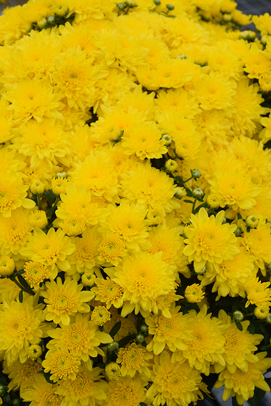 This variety will add a burst of color to your fall garden; bright yellow double blooms cover this perfectly mounded plant; blooms late in the season; adaptable to various conditions; best in full sun; ideal for containers, landscapes and bouquets
