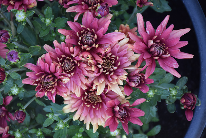 Fonti Pink Chrysanthemum is an herbaceous annual with a mounded form. Its relatively fine texture sets it apart from other garden plants with less refined foliage.