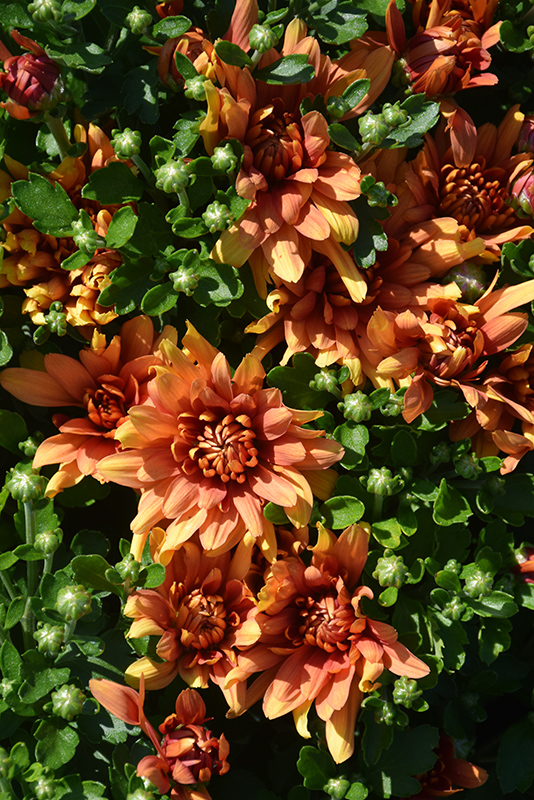 Homerun Orange Chrysanthemum is covered in stunning orange daisy flowers with coppery-bronze overtones at the ends of the stems from early to late fall. The flowers are excellent for cutting. Its fragrant ferny leaves remain dark green in colour throughout the season.