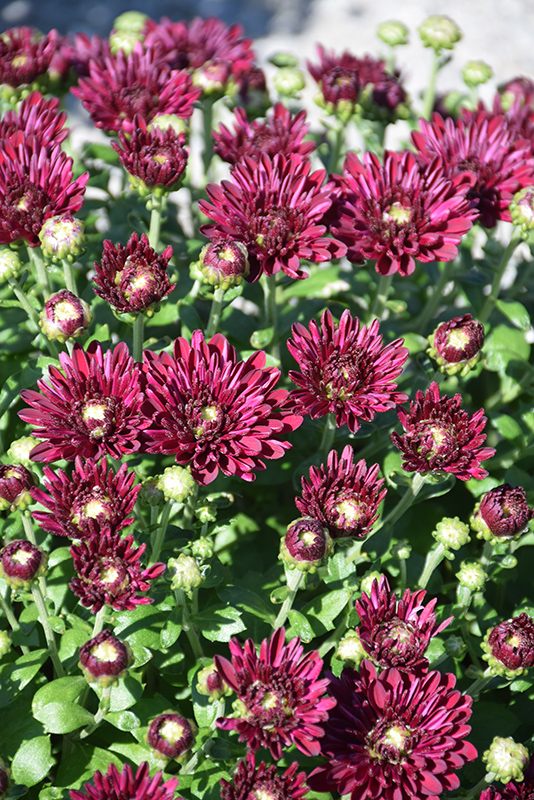 Early blooming with a semi-mounding habit, this variety features plum colored double blooms, cover deep green foliage; an excellent addition to fall containers, beds and borders; low maintenance and easy to grow; prefers full sun