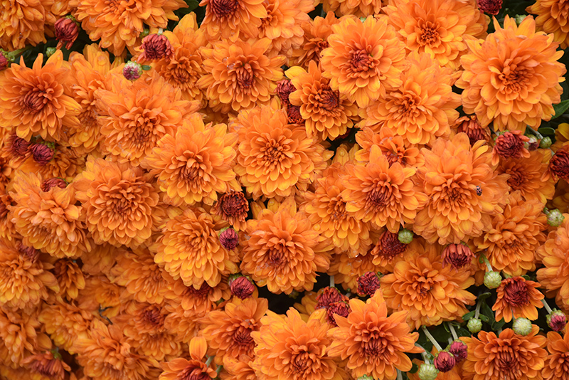 Miranda™ Orange Chrysanthemum is covered in stunning double orange daisy flowers with coppery-bronze overtones at the ends of the stems from early to late fall. The flowers are excellent for cutting. Its fragrant ferny leaves remain dark green in colour throughout the season.