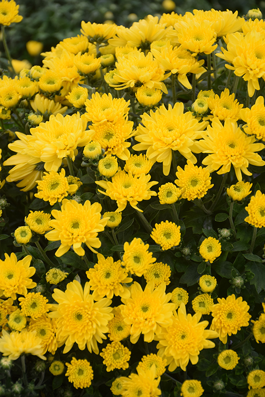 Morgana Yellow Chrysanthemum is covered in stunning double yellow daisy flowers at the ends of the stems from late summer to late fall. The flowers are excellent for cutting. Its fragrant ferny leaves remain dark green in colour throughout the season.