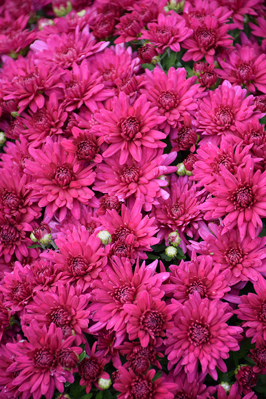 Strong flower quality on spherical-mounded plants; large, 2" wide double blooms is stunning purple cover dark green foliage on strong, flexible stems; ideal for fall containers and landscapes; excellent addition to fresh-cut arrangements; prefers full sun