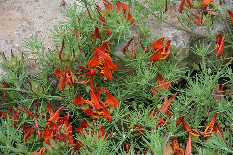 Parrots Beak features showy scarlet pea-like flowers with gold streaks along the stems from mid spring to early summer. Its attractive small needle-like leaves remain grayish green in colour with hints of silver throughout the season.