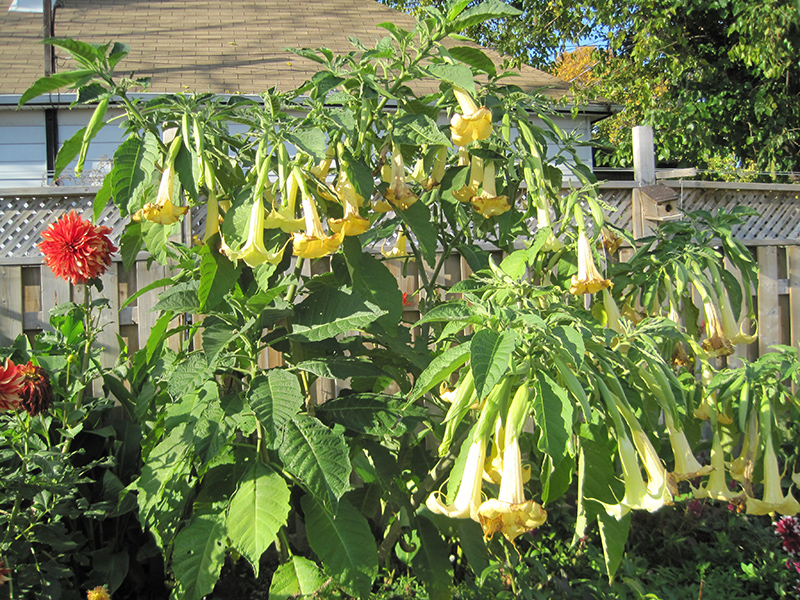 Jamaica Yellow Angel's Trumpet is a multi-stemmed annual with an upright spreading habit of growth. Its wonderfully bold, coarse texture can be very effective in a balanced garden composition.