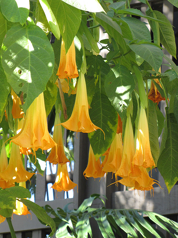 A heat loving variety that likes warm days and cool nights; large, dangling, buttery orange trumpets emerge in summer; flowers are fragrant only at night; perfect for containers, beds, and borders for a stunning presentation all season