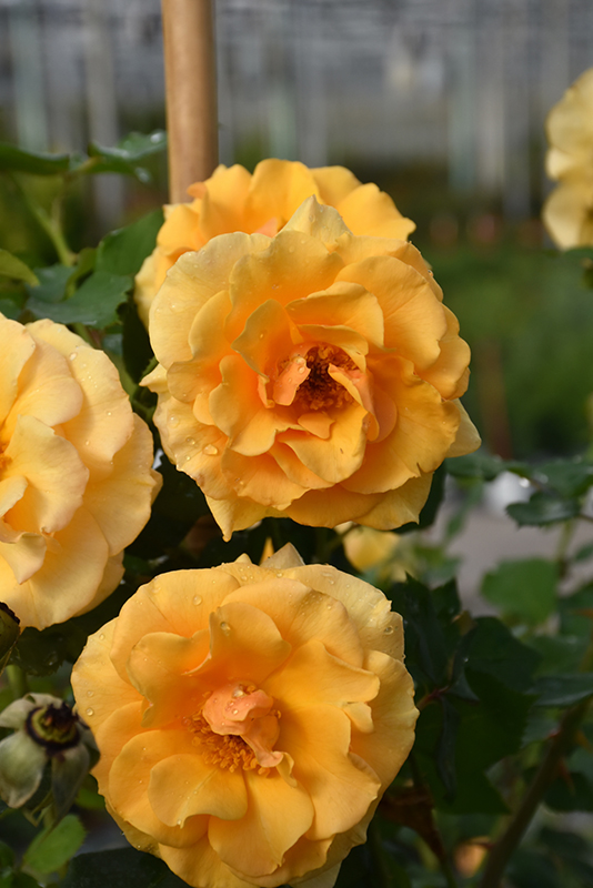 Rise Up Amberness® Rose features showy fragrant fully double gold flowers with peach overtones along the branches in early summer. The flowers are excellent for cutting. It has dark green deciduous foliage. The glossy oval compound leaves do not develop any appreciable fall colour.