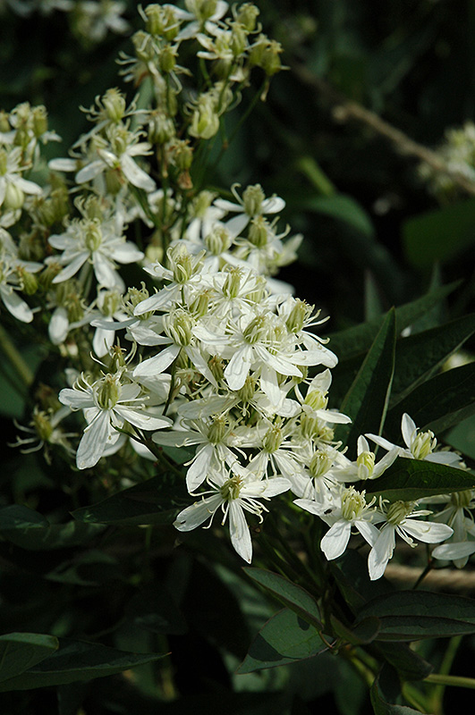 Despite being a clematis, this is actually more of a mounded perennial than a vine, with pretty white star-shaped flowers over the summer atop a dense mass of deep green foliage; give a hard pruning to the ground in spring for best results