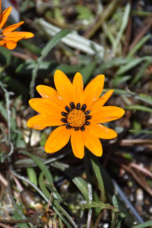 Tanager® Gazania features bold orange daisy flowers with a black ring at the ends of the stems from mid spring to mid fall. The flowers are excellent for cutting. Its narrow leaves are dark green in colour. The foliage often turns deep purple in fall.