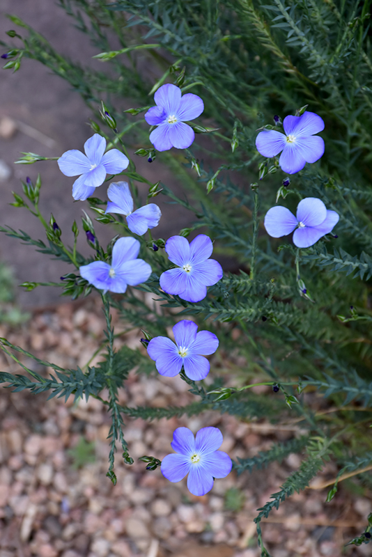 Narbonne Blue Flax will grow to be about 16 inches tall at maturity, with a spread of 18 inches. When grown in masses or used as a bedding plant, individual plants should be spaced approximately 16 inches apart. It grows at a medium rate, and under ideal conditions can be expected to live for approximately 10 years. As an herbaceous perennial, this plant will usually die back to the crown each winter, and will regrow from the base each spring. Be careful not to disturb the crown in late winter when it may not be readily seen!