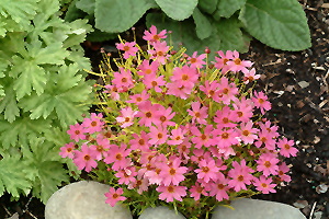 Stunning low growing mounds of golden yellow-chartreuse foliage feature hot pink, daisy-like flowers throughout the summer season and into the fall; excellent in containers, borders or garden landscapes; easy to grow, requiring little maintenance