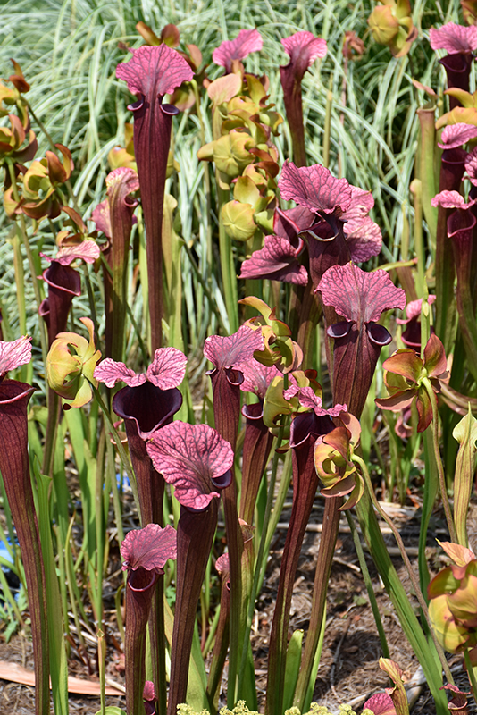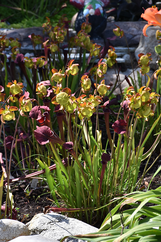 Conversation Piece Pitcher Plant will grow to be about 24 inches tall at maturity, with a spread of 18 inches. Its foliage tends to remain dense right to the ground, not requiring facer plants in front. It grows at a medium rate, and tends to be biennial, meaning that it puts on vegetative growth the first year, flowers the second, and then dies. As an herbaceous perennial, this plant will usually die back to the crown each winter, and will regrow from the base each spring. Be careful not to disturb the crown in late winter when it may not be readily seen!