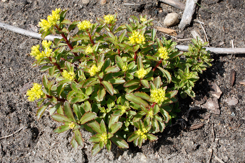 Glitterbug Stonecrop will grow to be only 6 inches tall at maturity extending to 8 inches tall with the flowers, with a spread of 12 inches. When grown in masses or used as a bedding plant, individual plants should be spaced approximately 8 inches apart. It grows at a fast rate, and under ideal conditions can be expected to live for approximately 15 years. As an herbaceous perennial, this plant will usually die back to the crown each winter, and will regrow from the base each spring. Be careful not to disturb the crown in late winter when it may not be readily seen!