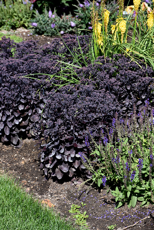 Rock 'N Grow® Midnight Velvet Stonecrop will grow to be about 18 inches tall at maturity extending to 24 inches tall with the flowers, with a spread of 32 inches. When grown in masses or used as a bedding plant, individual plants should be spaced approximately 30 inches apart. It grows at a fast rate, and under ideal conditions can be expected to live for approximately 15 years. As an herbaceous perennial, this plant will usually die back to the crown each winter, and will regrow from the base each spring. Be careful not to disturb the crown in late winter when it may not be readily seen!