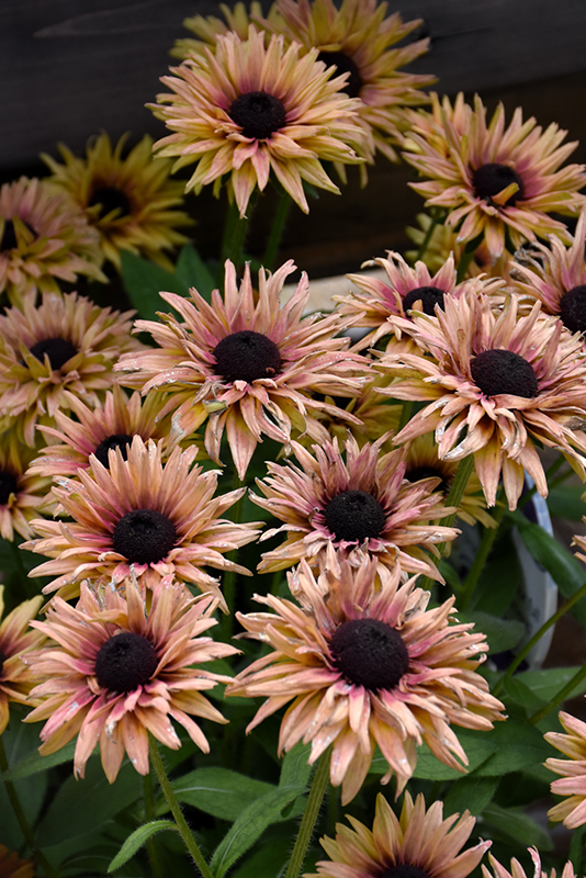 August™ Flame Coneflower has masses of beautiful semi-double gold daisy flowers with harvest gold overtones and dark brown eyes at the ends of the stems from mid summer to mid fall, which are most effective when planted in groupings. The flowers are excellent for cutting. Its pointy leaves remain dark green in colour throughout the season.