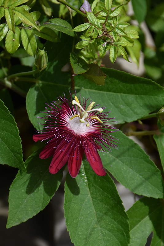 Anastasia Passion Flower will grow to be about 15 feet tall at maturity, with a spread of 30 inches. As a climbing vine, it should either be planted near a fence, trellis or other landscape structure where it can be trained to grow upwards on it, or allowed to trail off a retaining wall or slope. Although it's not a true annual, this fast-growing plant can be expected to behave as an annual in our climate if left outdoors over the winter, usually needing replacement the following year. As such, gardeners should take into consideration that it will perform differently than it would in its native habitat.