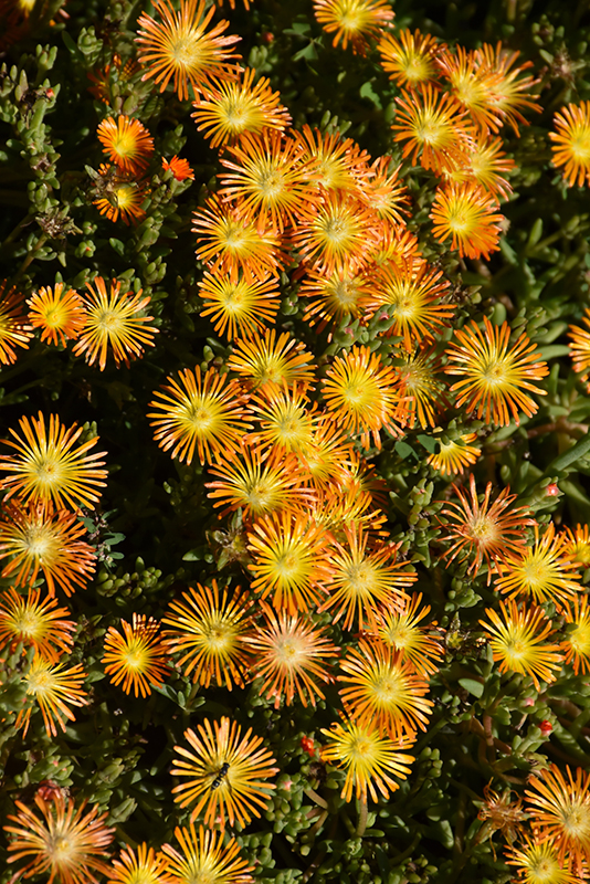 A low growing carpet-like, succulent, native to South Africa but amazingly hardy in North America; bright orange, daisy-like flowers with yellow centers; perfect for xeriscapes, rock gardens, screes and sandy soils; drought tolerant and easy to care for