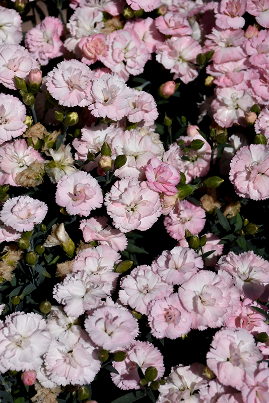 Constant Cadence® White Pinks will grow to be about 8 inches tall at maturity, with a spread of 14 inches. When grown in masses or used as a bedding plant, individual plants should be spaced approximately 12 inches apart. Its foliage tends to remain low and dense right to the ground. It grows at a medium rate, and under ideal conditions can be expected to live for approximately 10 years. As an evegreen perennial, this plant will typically keep its form and foliage year-round.