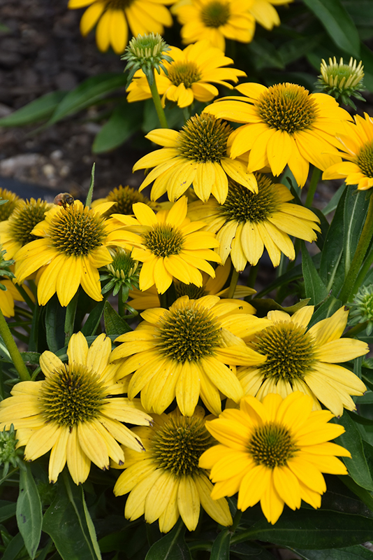 A remarkable variety with eye catching color; strong, compact bushy habit that is ideal for sunny borders and mixed containers; large and fragrant flowers have striking, non-fading sunny yellow petals, surrounding a deep golden cone; deadhead spent blooms