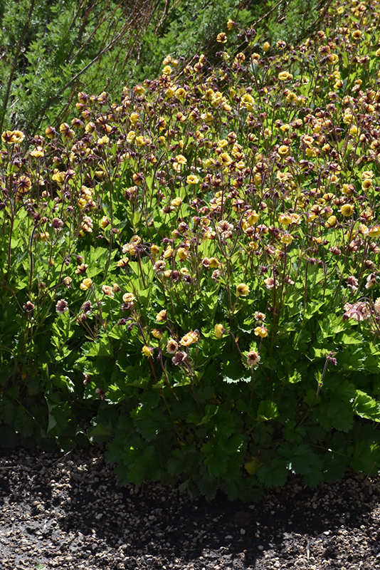 Tempo™ Yellow Avens will grow to be about 14 inches tall at maturity extending to 20 inches tall with the flowers, with a spread of 24 inches. Its foliage tends to remain dense right to the ground, not requiring facer plants in front. It grows at a medium rate, and under ideal conditions can be expected to live for approximately 3 years. As an herbaceous perennial, this plant will usually die back to the crown each winter, and will regrow from the base each spring. Be careful not to disturb the crown in late winter when it may not be readily seen!