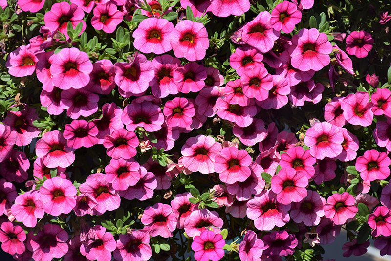 Eyeconic™ Pink Calibrachoa is covered in stunning hot pink trumpet-shaped flowers with red throats at the ends of the stems from late spring to early fall. Its small pointy leaves remain green in colour throughout the season.