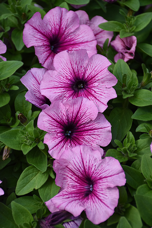 CannonBall™ Rose Vein Petunia is blanketed in stunning pink trumpet-shaped flowers with rose veins at the ends of the stems from mid spring to late summer. Its pointy leaves remain green in colour throughout the season.