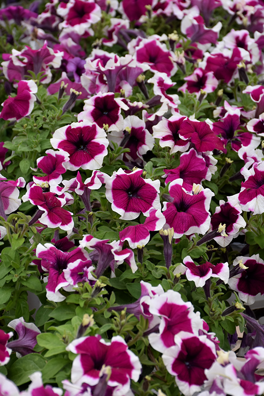Dreams™ Burgundy Picotee Petunia is a dense herbaceous annual with a mounded form. Its medium texture blends into the garden, but can always be balanced by a couple of finer or coarser plants for an effective composition.