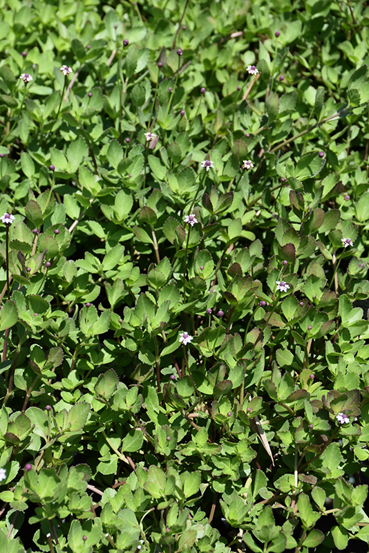 Turkey Tangle Frogfruit will grow to be only 3 inches tall at maturity extending to 4 inches tall with the flowers, with a spread of 24 inches. When grown in masses or used as a bedding plant, individual plants should be spaced approximately 18 inches apart. Its foliage tends to remain low and dense right to the ground. It grows at a medium rate, and under ideal conditions can be expected to live for approximately 20 years. As an herbaceous perennial, this plant will usually die back to the crown each winter, and will regrow from the base each spring. Be careful not to disturb the crown in late winter when it may not be readily seen!