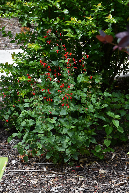 Scarlet Sage will grow to be about 24 inches tall at maturity extending to 3 feet tall with the flowers, with a spread of 18 inches. When grown in masses or used as a bedding plant, individual plants should be spaced approximately 15 inches apart. Although it's not a true annual, this plant can be expected to behave as an annual in our climate if left outdoors over the winter, usually needing replacement the following year. As such, gardeners should take into consideration that it will perform differently than it would in its native habitat.