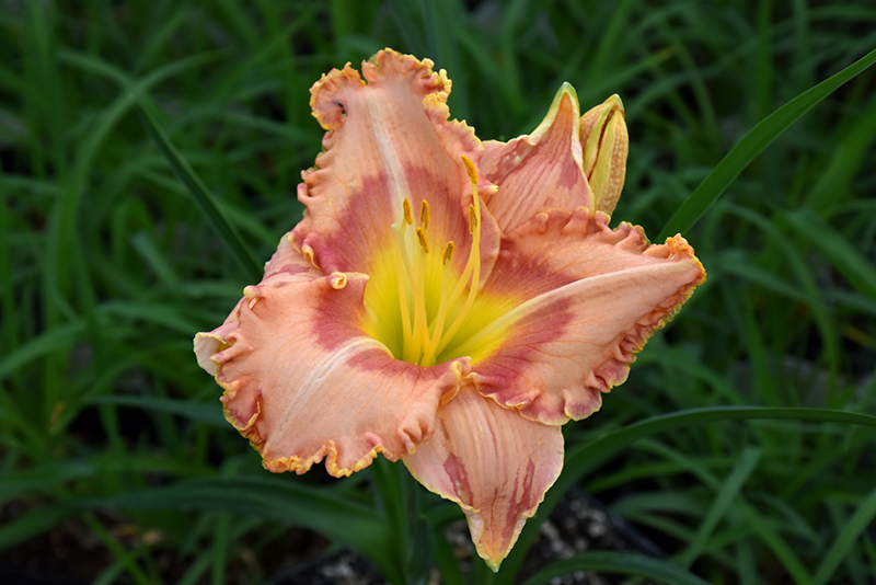 Charming ballet pink blooms with deep pink eyes and golden yellow, ruffled edges rise above low growing mounds of arching green foliage; great grassy texture and form; tetraploid; a spectacular color addition to the garden or border