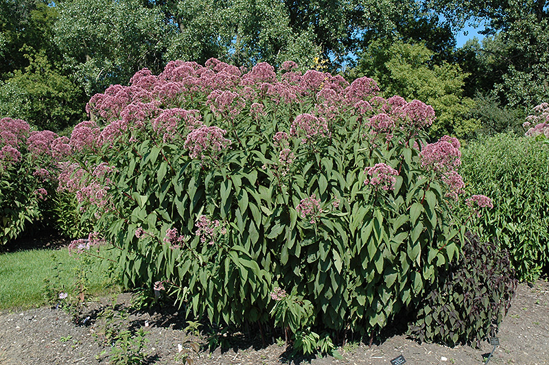 Little Red Joe Pye Weed will grow to be about 3 feet tall at maturity extending to 4 feet tall with the flowers, with a spread of 3 feet. When grown in masses or used as a bedding plant, individual plants should be spaced approximately 24 inches apart. It grows at a medium rate, and under ideal conditions can be expected to live for approximately 15 years. As an herbaceous perennial, this plant will usually die back to the crown each winter, and will regrow from the base each spring. Be careful not to disturb the crown in late winter when it may not be readily seen!