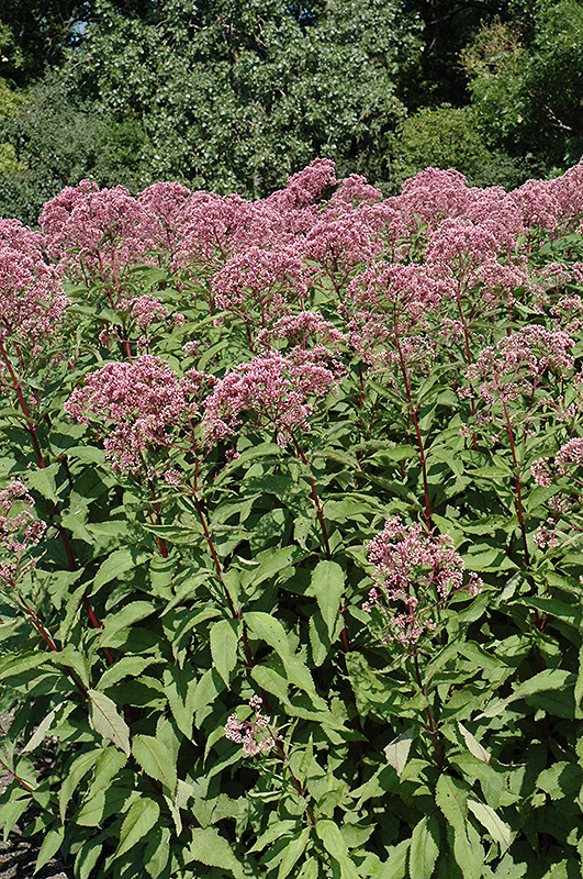 Glutball Joe Pye Weed will grow to be about 6 feet tall at maturity, with a spread of 4 feet. When grown in masses or used as a bedding plant, individual plants should be spaced approximately 3 feet apart. It tends to be leggy, with a typical clearance of 1 foot from the ground, and should be underplanted with lower-growing perennials. It grows at a medium rate, and under ideal conditions can be expected to live for approximately 15 years. As an herbaceous perennial, this plant will usually die back to the crown each winter, and will regrow from the base each spring. Be careful not to disturb the crown in late winter when it may not be readily seen!