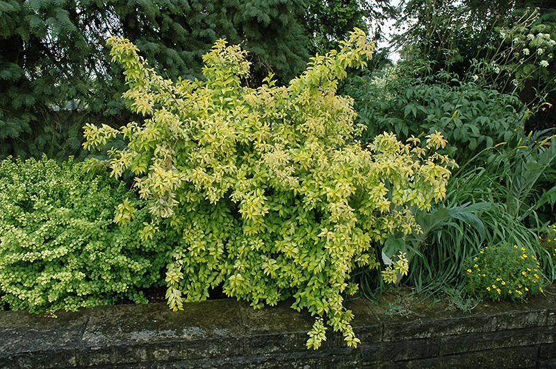 Gold Leaf Forsythia will grow to be about 4 feet tall at maturity, with a spread of 4 feet. It tends to fill out right to the ground and therefore doesn't necessarily require facer plants in front. It grows at a medium rate, and under ideal conditions can be expected to live for approximately 30 years.