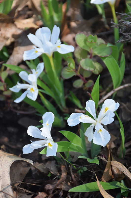 White Crested Iris will grow to be only 6 inches tall at maturity extending to 8 inches tall with the flowers, with a spread of 12 inches. When grown in masses or used as a bedding plant, individual plants should be spaced approximately 10 inches apart. Its foliage tends to remain low and dense right to the ground. It grows at a medium rate, and under ideal conditions can be expected to live for approximately 10 years. As an herbaceous perennial, this plant will usually die back to the crown each winter, and will regrow from the base each spring. Be careful not to disturb the crown in late winter when it may not be readily seen!