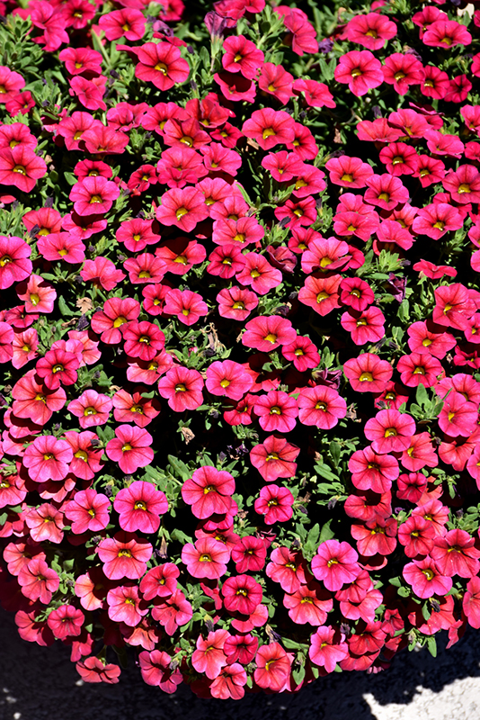 Conga™ Cherry Calibrachoa is draped in stunning cherry red trumpet-shaped flowers with yellow throats at the ends of the stems from late spring to early fall. Its small pointy leaves remain green in colour throughout the season.