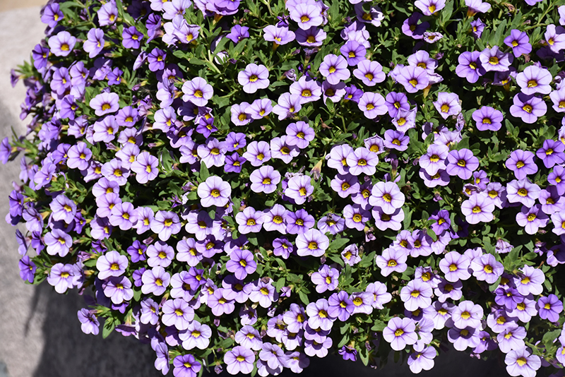 Conga™ Lavender Calibrachoa is draped in stunning lavender trumpet-shaped flowers with yellow throats at the ends of the stems from late spring to early fall. Its small pointy leaves remain green in colour throughout the season.